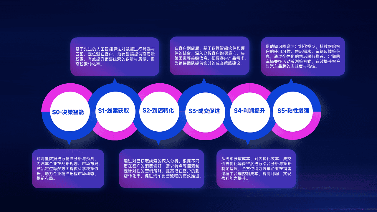 通过拓宽潜在客户来源、、、优化线索分配并提高到店转化率,,以增强销售效率。。。同时,,利用线索数据不断优化分析模型,,,有效提升转化率,,,扩大营销影响力。。。